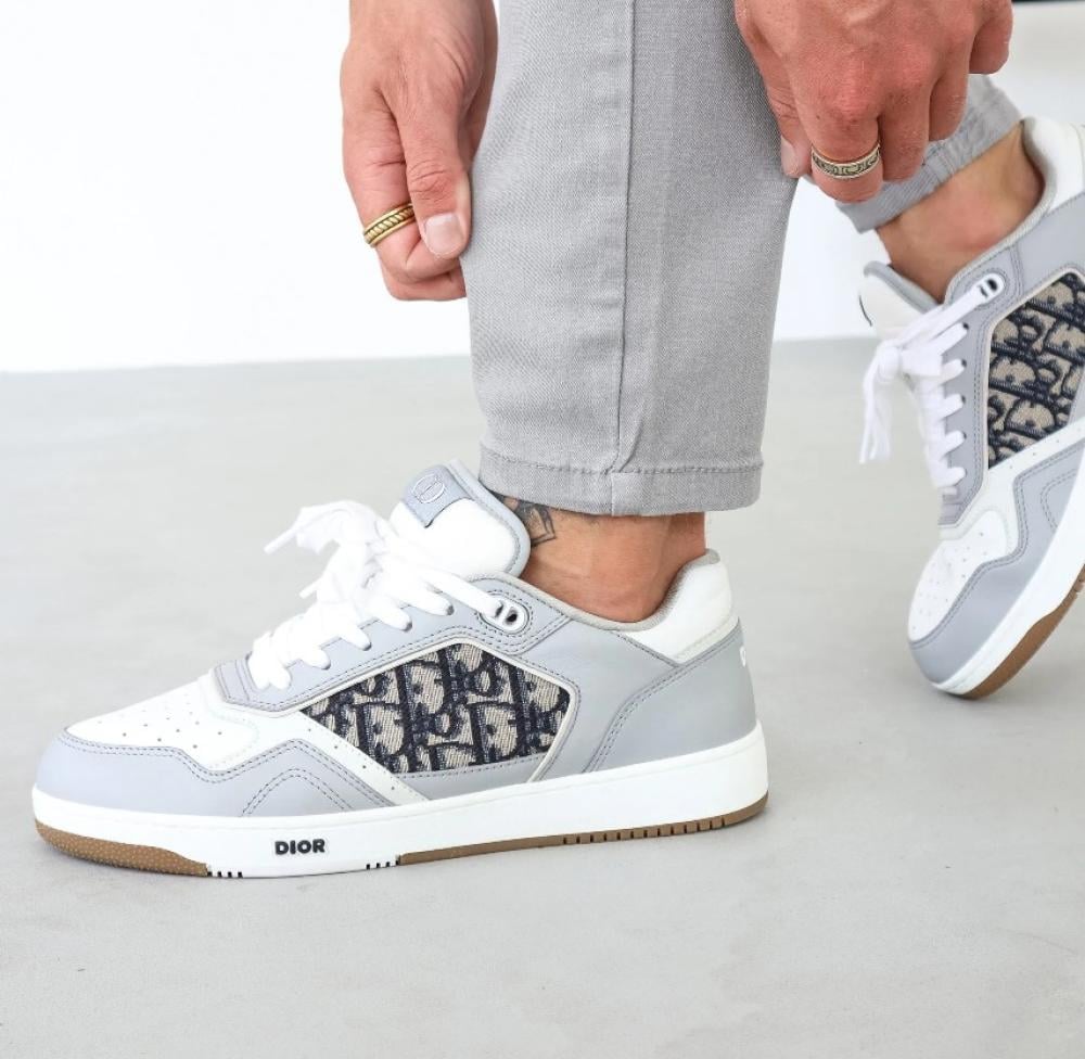 يتميز حذاء ديور الرياضي “بي٢٧” بقصة منخفضة من بولو جي بجزء علوي من الجلد باللون الرمادي. مع غطاء اصبع القدم من الجلد الأبيض ، وعداد الكعب ، واللسان ؛ لوحة نسيج مائلة باللون البيج والبحري على الجانبين ؛ جبهة الدانتيل الأبيض؛ رقعة الشعار باللون الرمادي على اللسان ؛ شعار “ديور” أبيض على الكعب ؛ نعل اوسط من المطاط الأبيض ونعل خارجي من المطاط اللثة.