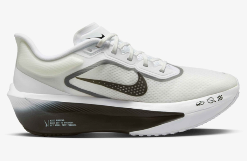 يتميز بتصميم كلاسيكي مع خطوط وتفاصيل باللون الأسود على الخلفية البيضاء، مناسب للجري والتدريب والأنشطة الرياضية بشكل عام، ويوفر راحة للارتداء اليومي.